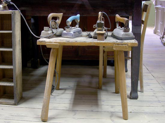 Zwei kleine Menschlein, die, in schöner Regelmäßigkeit und ein jeder vor seinem Arbeitsgerät,