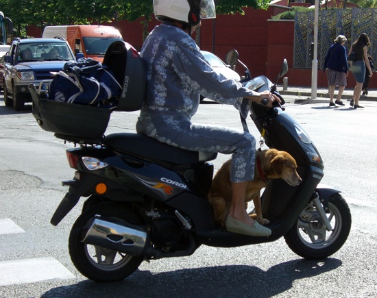An einen Helm für ihren tierischen Begleiter hat diese Motorbiene