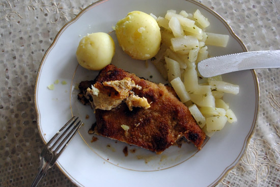 paniertem Putenschnitzel aus (noch) nicht eigener Aufzucht - einfach köstlich ...