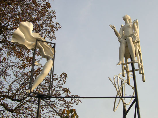 Aluminium und dicken Murano-Glas-Perlen auf. Er ist das Werk des französischen Künstlers